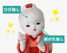 博多人形の原料である胡粉(ごふん)はデリケートな素材のため、湿気や乾燥、経年劣化によってひびや剥がれが起きやすいです。これらがないお人形は、高額査定に繋がりやすくなります。